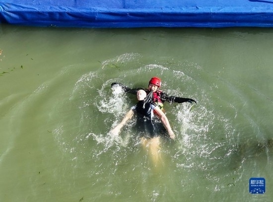 11月8日,消防員在南京玄武湖參加水域救援比賽(無人機(jī)照片)。