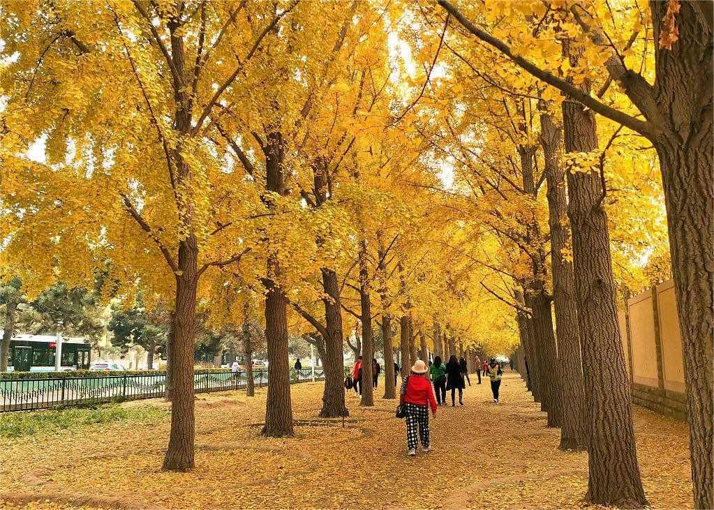 北京釣魚臺(tái)銀杏大道一片金黃,進(jìn)入最佳觀賞期,吸引市民前來打卡游玩拍照。