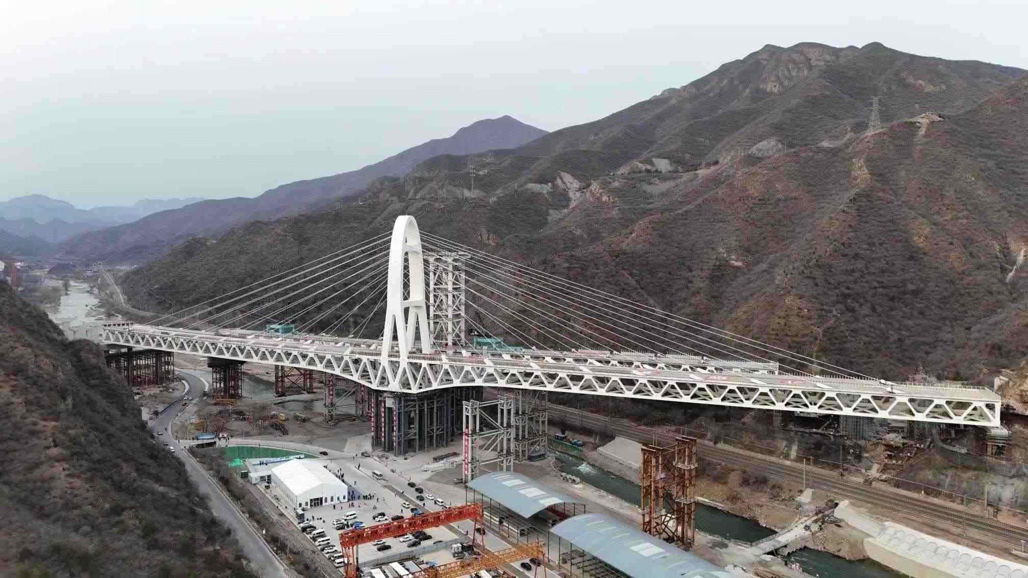 國道109新線高速公路項(xiàng)目,作為京西地區(qū)首條高速公路和北京市重點(diǎn)民生工程,該項(xiàng)目建成后,將成為連通河北與北京的新快速交通走廊,成為緩解京西北、京西南交通壓力的新干線,促進(jìn)地區(qū)經(jīng)濟(jì)社會快速發(fā)展跑出“加速度”,為門頭溝區(qū)盤活紅色旅游資源、傳統(tǒng)特色村落開發(fā)和非遺文化傳承迎來高質(zhì)量發(fā)展新契機(jī)。安家莊特大橋?qū)⒊砷T頭溝地標(biāo)性建筑。