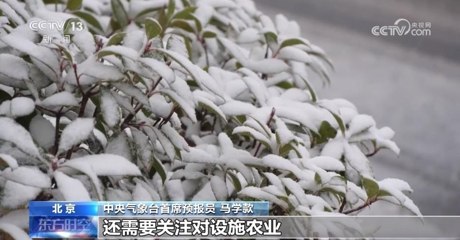 中央氣象臺(tái)首席預(yù)報(bào)員 馬學(xué)款:由于北方地區(qū)的兩輪強(qiáng)降雪的落區(qū)是高度重疊的,所以對(duì)于有些地方新增積雪可能有累加效果。降雪除了對(duì)交通運(yùn)輸帶來一些明顯的影響之外,還需要關(guān)注對(duì)設(shè)施農(nóng)業(yè)導(dǎo)致的一些不利影響。