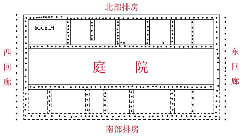 “結(jié)合以往考古發(fā)掘成果來看,古城寨遺址城內(nèi)中部偏東區(qū)域為宮殿核心區(qū)?!崩畈┱f,“新發(fā)現(xiàn)的1號夯土臺基、東部夯土遺跡,與以往發(fā)現(xiàn)的宮殿建筑基址、廊廡基址一道,在平面布局上構(gòu)成了四合院式的宮殿建筑群。”