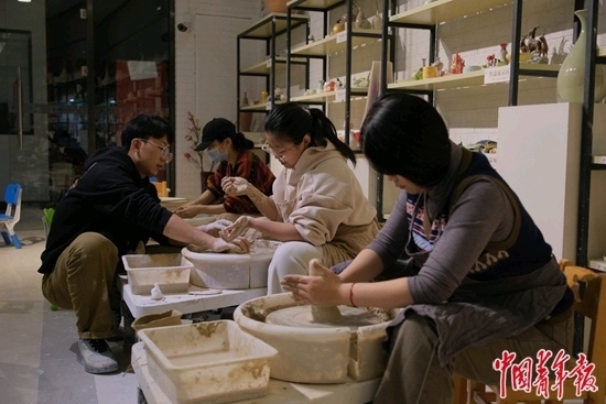 開設(shè)陶藝夜校之前,柴鑫杰在北京宋莊附近經(jīng)營(yíng)著一家專業(yè)陶藝工作室。但幾個(gè)月前,工作室小院遇上了拆遷,他和朋友商量著,那就試著以夜校的模式,把陶藝搬到市區(qū),“雖然成本高,燒窯不方便,但是人多了起來(lái),創(chuàng)造收益的機(jī)會(huì)也會(huì)多一些”。