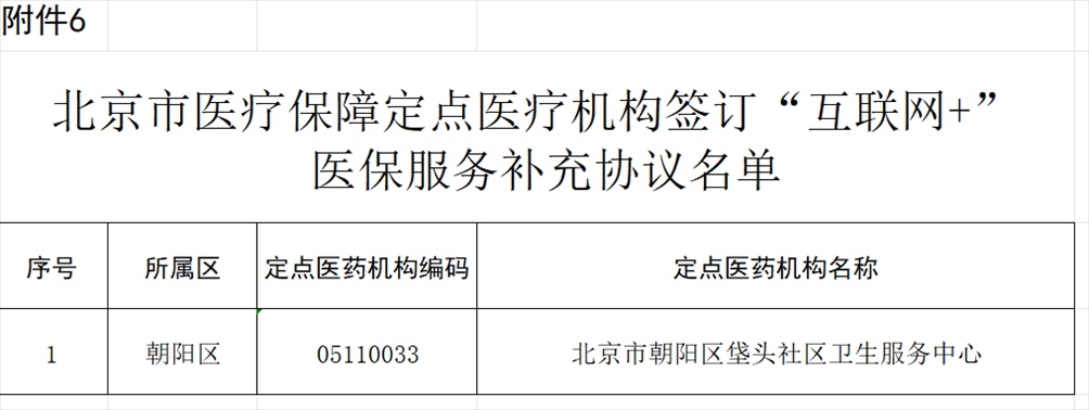 北京市朝陽(yáng)區(qū)垡頭社區(qū)衛(wèi)生服務(wù)中心申請(qǐng)開(kāi)展“互聯(lián)網(wǎng)+”醫(yī)保服務(wù),經(jīng)市、區(qū)醫(yī)保經(jīng)辦機(jī)構(gòu)審核并通過(guò)信息系統(tǒng)業(yè)務(wù)驗(yàn)收,該定點(diǎn)醫(yī)療機(jī)構(gòu)符合“互聯(lián)網(wǎng)+”醫(yī)保服務(wù)條件,簽訂《<北京市基本醫(yī)療保險(xiǎn)定點(diǎn)醫(yī)療機(jī)構(gòu)服務(wù)協(xié)議書(shū)>“互聯(lián)網(wǎng)+”醫(yī)保服務(wù)補(bǔ)充協(xié)議》,為參保人員提供北京市醫(yī)療保障“互聯(lián)網(wǎng)+”醫(yī)保服務(wù)(見(jiàn)附件6)。