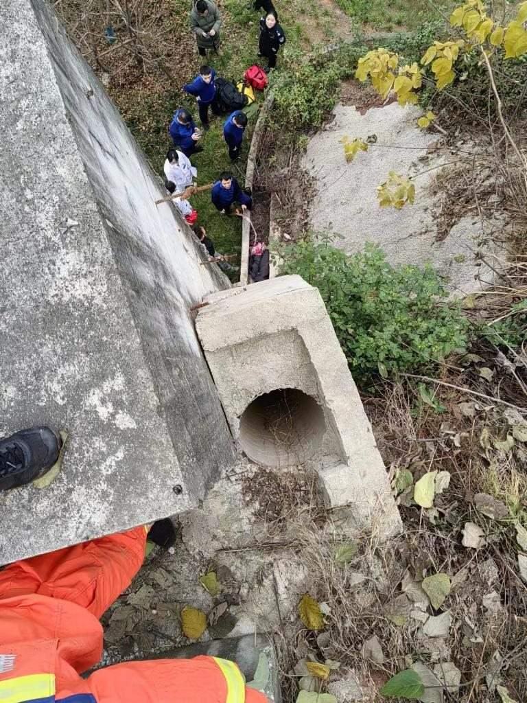 1月11日上午,魚洞派出所所長梁大勇等人在搜尋時,發(fā)現(xiàn)一處涵洞下方的排水管道口,似乎有人影晃動。他當(dāng)機立斷進行核實,只見一小孩上半身被卡在管道中,下半身在管道外動彈不得。經(jīng)確認(rèn),被困的正是失蹤了6天6夜的小男孩。