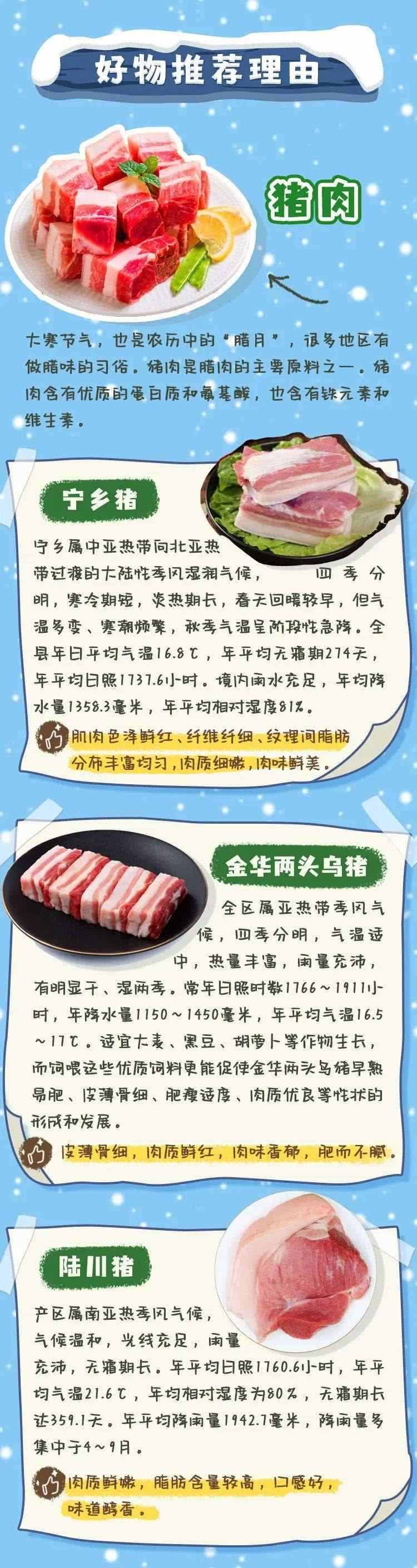 大寒節(jié)氣除了吃糯米飯外,還有一個習(xí)俗就是做臘肉、吃臘肉?!岸D風(fēng)腌,蓄以御冬”,這個時節(jié),最適合風(fēng)干制作臘味。豬肉,是臘肉的主要原材料之一。我國的養(yǎng)豬史,最早可以追溯到新石器時代,目前豬肉產(chǎn)區(qū)可以說是遍布全國,不同地區(qū)的豬肉也有不同的特色和風(fēng)味。