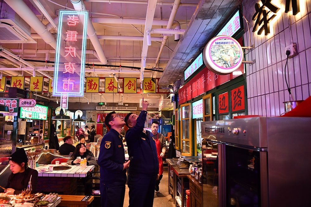 其間,各級檢查組重點圍繞各場所燃氣用具的安裝、使用是否符合技術標準,消防控制室是否正常運行,電氣線路敷設是否規(guī)范,是否有使用易燃可燃材料裝修、隔斷,疏散通道、安全出口是否暢通,單位消防安全巡查,應急處置預案是否落實等問題進行認真檢查。同時,檢查人員還通過現(xiàn)場提問和實地操作的形式,了解被檢查場所負責人及員工的消防安全知識、消防設施器材使用方法的掌握情況。針對檢查中發(fā)現(xiàn)的問題,檢查人員逐一提出切實可行的整改措施并現(xiàn)場約談被查單位消防安全責任人,要求各單位要認真落實單位主體消防安全責任,強化日常防范,全面開展消防安全隱患自查自改,加大消防安全培訓力度,定期組織消防應急疏散演練,確保單位自身消防安全。