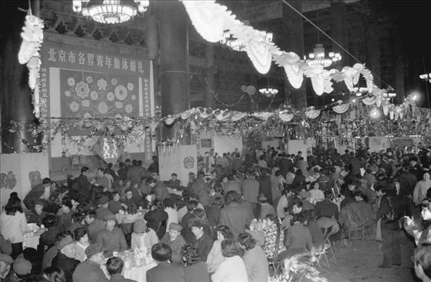 1983年春節(jié)前夕,首都150對青年破舊俗、立新風、文明節(jié)儉辦婚事,參加了由北京市工、青、婦等九單位舉辦的集體婚禮。