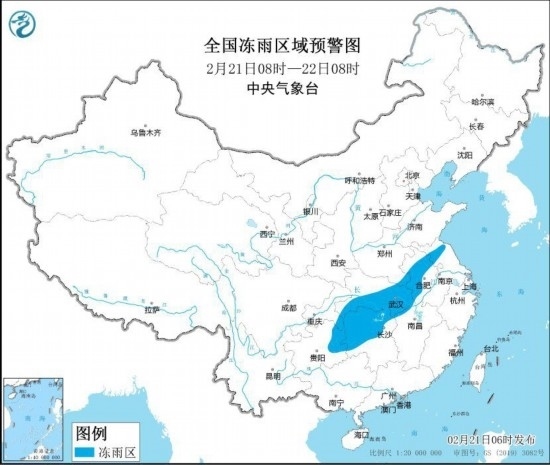 全國凍雨區(qū)域預警圖(2月21日8時-22日8時)
