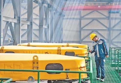 青海鹽湖工業(yè)股份有限公司鉀肥分公司加工車間內,工人在巡檢鉀肥生產狀況。潘彬彬攝(新華社發(fā))