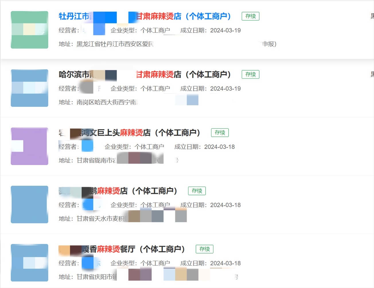 根據(jù)天眼查,今年2月至今,全國新開業(yè)的“甘肅麻辣燙”店已累計(jì)超過150家。