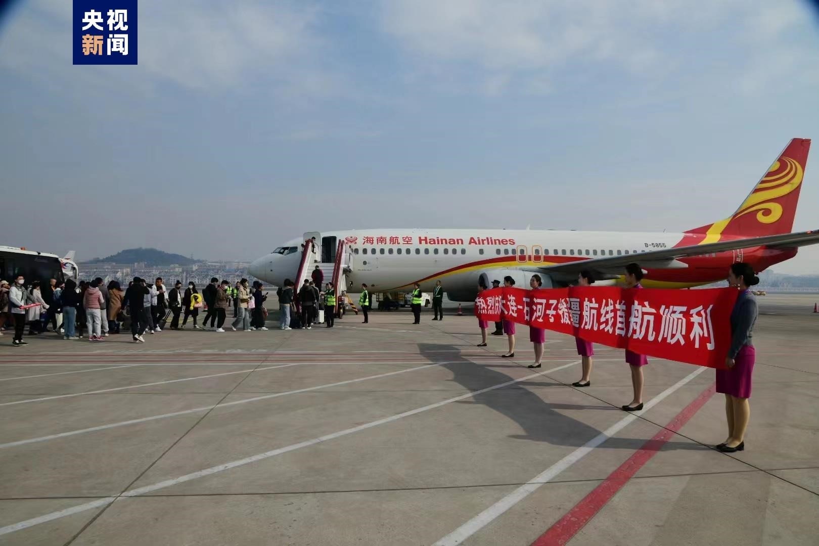 該航線由海南航空波音737-800機型執(zhí)飛,每周3班。新航線的開通是繼宜昌之后,大連機場開通的第二條對口支援航線。(總臺記者 賈鐵生)