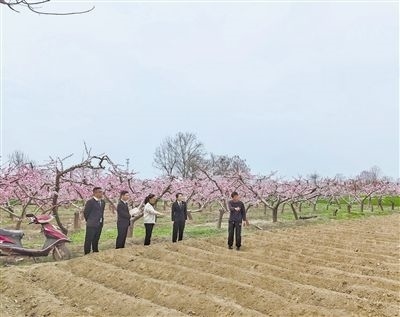 圖②:法官在浮陽村就桃園與田地農(nóng)村土地承包經(jīng)營權(quán)糾紛一案進(jìn)行現(xiàn)場勘驗(yàn)。