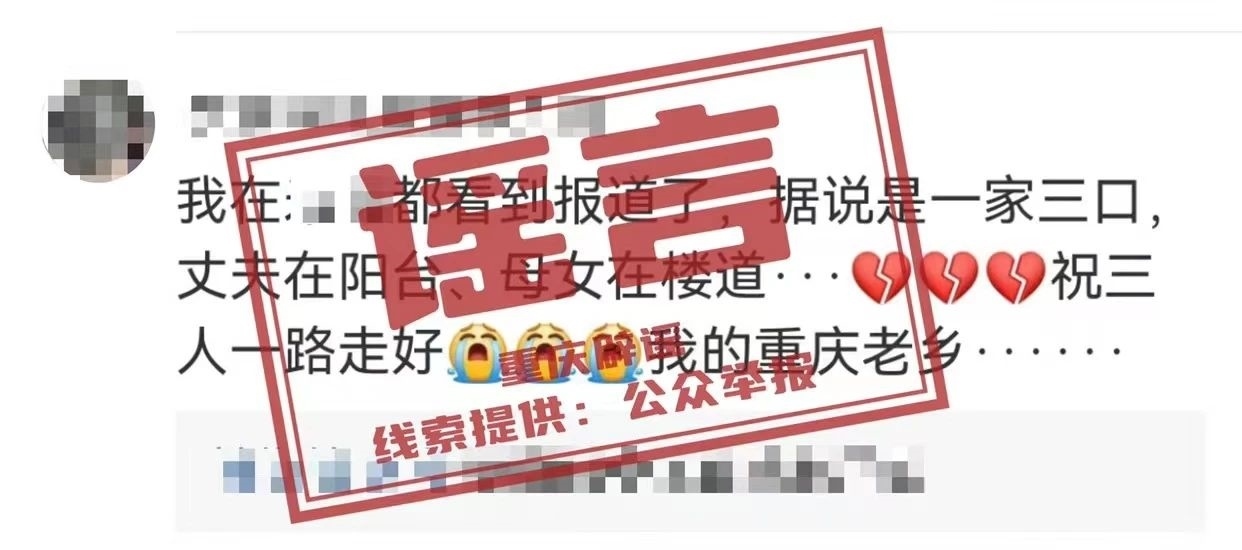 央視網(wǎng)消息:據(jù)重慶市互聯(lián)網(wǎng)違法和不良信息舉報中心視頻號“重慶辟謠”消息,網(wǎng)傳“重慶一家人全部上吊而死”為謠言,系網(wǎng)民拼湊、杜撰的虛假信息。