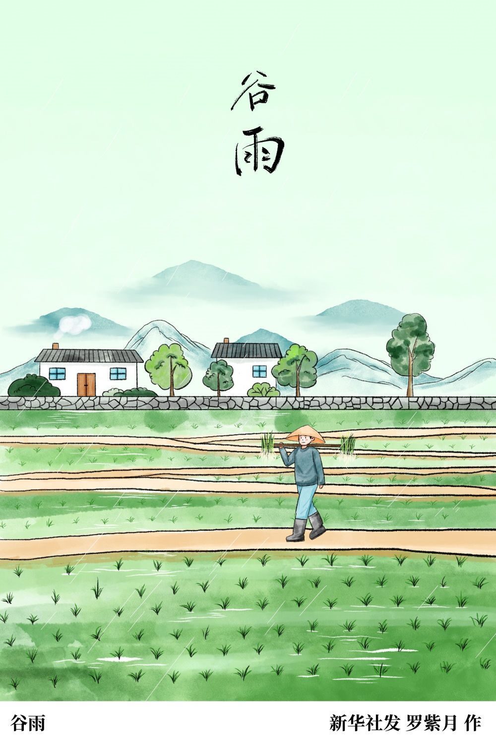 所謂“雨生百谷”,說(shuō)的是每年到此時(shí)節(jié),氣溫升高加快、降雨量增加,不論初插的秧苗,還是新種的作物,都能得以茁壯成長(zhǎng)。“谷雨”這一節(jié)氣名稱(chēng)也由此而來(lái)?!对铝钇呤蚣狻酚涊d:“三月中,自雨水后,土膏脈動(dòng),今又雨其谷于水也。……蓋谷以此時(shí)播種,自上而下也?!狈从吵龉扔甑霓r(nóng)業(yè)氣候意義。