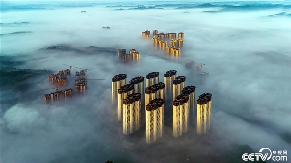 2024年4月26日,四川資陽,安岳縣上空云霧縹緲,城市高樓在云霧中若隱若現(xiàn)。