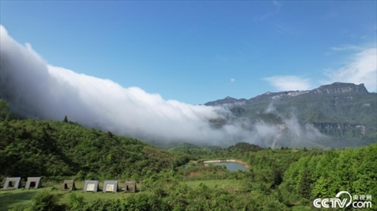 2024年4月26日,重慶,金佛山風吹嶺雨后出現(xiàn)罕見的云瀑景觀。