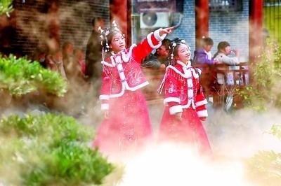 夜幕降臨后,襄陽古城迎來了一天最具魅力的時刻。漫步在店鋪林立、游人如織的北街上,遠處巍峨聳立的昭明臺燈火輝煌,全長1200多米的寬闊街道上,一座座石牌坊坐落其間,兩側(cè)雅致的青磚馬頭墻、明艷的朱紅立柱、優(yōu)美的墀頭朱雀,展示著古老而又時尚的文化韻味。在北街循著巷子東行,便來到了新近開放的管家巷歷史文化商業(yè)街區(qū)。在襄音廣場,隨著音樂聲響起,年輕的演員們與游客共同跳起歡快的舞蹈。管家巷文化休閑街區(qū)運營負責人劉洋介紹:“《詩畫襄陽》《俠義襄陽》《舞墨襄陽》等10部極具襄陽韻味的特色劇目,在管家巷全程免費開放,劉備、諸葛亮、李白、杜甫、孟浩然等30多位歷史名人的扮演者,走街串巷、演藝互動,游客仿佛穿越至千年前的襄陽?!?/p>