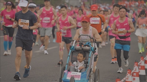 10年來(lái),這位父親推著兒子在大江南北、長(zhǎng)城內(nèi)外,不竭地奔跑了70場(chǎng)馬拉松。