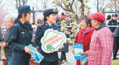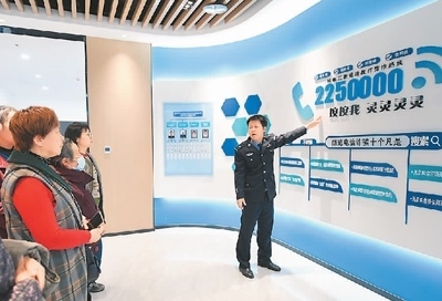 浙江省湖州市吳興區(qū)愛山街道警務人員向群眾介紹網(wǎng)絡反詐知識。新華社記者 翁忻旸攝