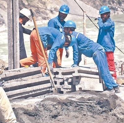 為保障喀喇昆侖公路暢通,巴中兩國工程人員正在進行施工。本報巴基斯坦分社 賽義德·邁赫迪攝