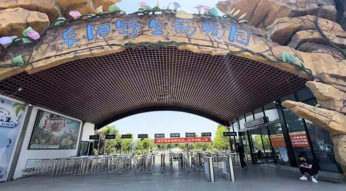 5月16日,澎湃新聞?dòng)浾攥F(xiàn)場探訪發(fā)現(xiàn),阜陽野生動(dòng)物園仍舊關(guān)閉,有安保人員在現(xiàn)場把守。安保人員表示,因某些原因園區(qū)無法按時(shí)開放,其間有游客上門詢問,被勸離。