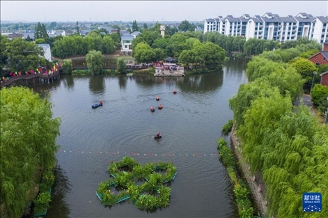 當(dāng)日,浙江省湖州市吳興區(qū)東林鎮(zhèn)舉辦“慶端午 劃菱桶”水鄉(xiāng)端午趣味民俗活動,來自東林鎮(zhèn)各村的村民們在泉益村參加了水鄉(xiāng)劃菱桶比賽、荷塘釣小龍蝦、做艾草花束、包粽子等端午趣味民俗活動,在初夏時節(jié)呈現(xiàn)江南水鄉(xiāng)特有的迎端午氣氛。