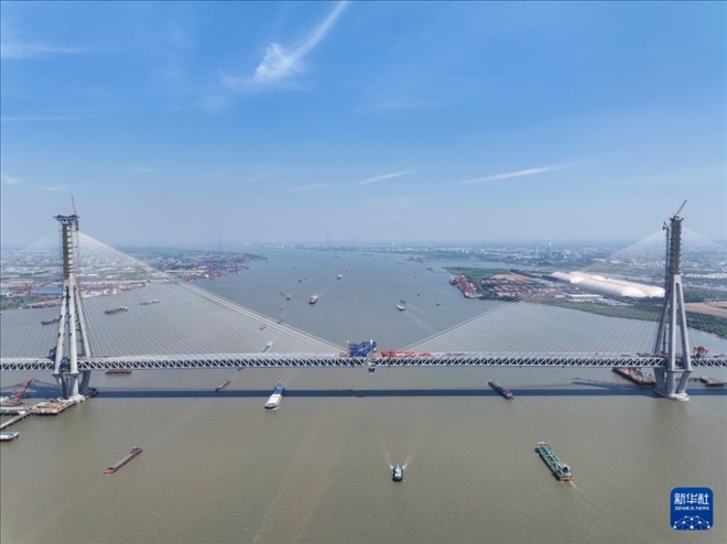 5月29日,常泰長江大橋主航道橋最后一節(jié)鋼桁梁——合龍段鋼桁梁順利吊裝到位,拉開主橋合龍的序幕,預(yù)計6月上旬完成合龍,實現(xiàn)全橋貫通。