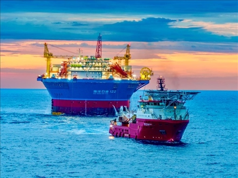 ·我國自主設(shè)計建造的亞洲首艘圓筒型“海上油氣加工廠”——“海葵一號”運抵作業(yè)海域。