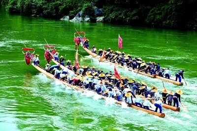 每年農(nóng)歷五月,在貴州省黔東南苗族侗族自治州的清水江流域,當(dāng)?shù)氐拿缱迦罕姸紩?huì)舉辦苗族獨(dú)木龍舟節(jié)。龍舟節(jié)以水上龍舟競渡為載體,融合了苗族服飾文化、歌舞文化、飲食文化等,數(shù)百年經(jīng)久不衰,沿襲至今。2008年,苗族獨(dú)木龍舟節(jié)便被列入第二批國家級非物質(zhì)文化遺產(chǎn)代表性項(xiàng)目名錄。