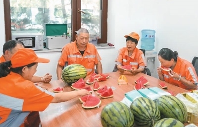 6月11日,山東省濟(jì)南市繼續(xù)發(fā)布高溫紅色預(yù)警信號。為應(yīng)對持續(xù)高溫天氣,濟(jì)南市城管部門采取調(diào)整作業(yè)時(shí)間、配發(fā)防暑降溫物品、增加歇腳點(diǎn)等措施,保障環(huán)衛(wèi)工人健康。圖為環(huán)衛(wèi)工人在濟(jì)南市槐蔭區(qū)一處歇腳點(diǎn)內(nèi)休息。新華社記者 朱 崢攝