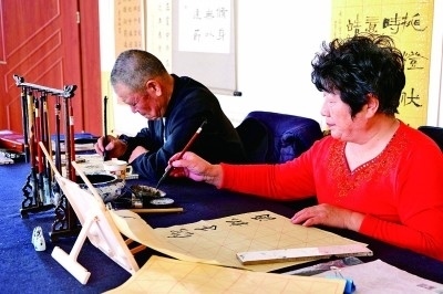 市民在社區(qū)文化中心練習書法。光明日報記者 郭俊鋒攝