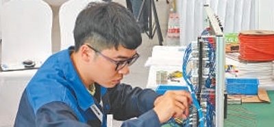 手持記號筆,目光如炬,只見軌道信號控制技術(shù)項目選手陳權(quán)(見圖,本報記者蔣雨師攝)在電路圖里精準(zhǔn)鎖定電路,將一個個接點逐一填入配線表,動作行云流水,一氣呵成。在大賽現(xiàn)場,軌道信號控制技術(shù)項目選手需要完成軌道信號設(shè)備的設(shè)計、施工、調(diào)試與檢修工作。就設(shè)計環(huán)節(jié)而言,選手們需要把上百條電路信號的轉(zhuǎn)轍機(jī)電路設(shè)計圖轉(zhuǎn)換為電路配線表,但凡有一個接點錯誤,整個電路都將出現(xiàn)問題,而這一環(huán)節(jié),陳權(quán)只花了10分鐘。