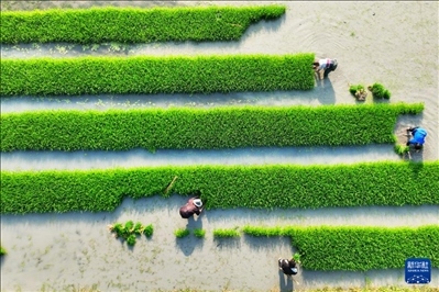“三夏”時節(jié),綿陽市安州區(qū)秀水鎮(zhèn)石紅村一派忙碌景象。插秧機(jī)在田間穿梭,村民周啟軍忙著補(bǔ)栽秧苗?!白罱疃?,按照‘經(jīng)紀(jì)公司’安排,除了農(nóng)忙插秧,下個月還得安裝路燈、修補(bǔ)堰塘?!崩现苷f。