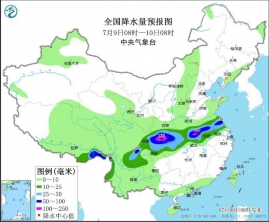全國降水量預報圖(7月9日08時-10日08時)