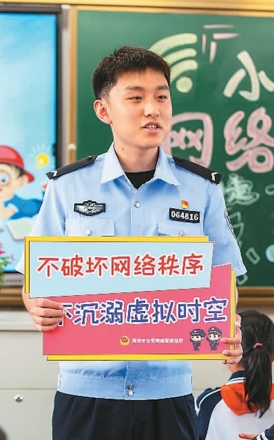 安徽省蕪湖市公安局繁昌分局城關(guān)派出所民警給小學(xué)生普及網(wǎng)絡(luò)安全知識。肖本祥攝(人民視覺)