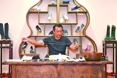 十多年前,26歲的蔡文科拜師學(xué)藝。幾年后,同期學(xué)藝的人陸續(xù)走了,他卻堅(jiān)持了下來。吃了些苦頭、費(fèi)了些心思,蔡文科出師了,還成為內(nèi)聯(lián)升布鞋非遺傳承人。