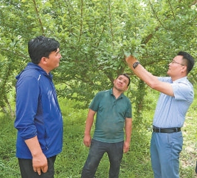 走進(jìn)居民玉素普艾力·達(dá)吾提的果園,徐學(xué)彬正與果農(nóng)交流農(nóng)業(yè)知識(shí):“今年人工授粉,掛果挺好,但還要把防蟲、疏果、施肥放在心上,這才能保證果實(shí)的品質(zhì)?!庇袼仄瞻Αみ_(dá)吾提連連點(diǎn)頭,說(shuō):“你放心,我記著!”