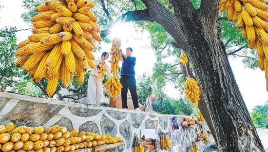 10月14日,河北省石家莊市鹿泉區(qū)段莊村舉辦曬秋民俗活動,吸引游客參與,同享秋日豐收時光。張曉峰攝(中經(jīng)視覺)