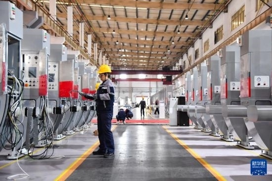 10月23日,工作人員在位于陜西省渭南市高新區(qū)的陜西北人印刷機械有限責任公司生產(chǎn)車間組裝產(chǎn)品。