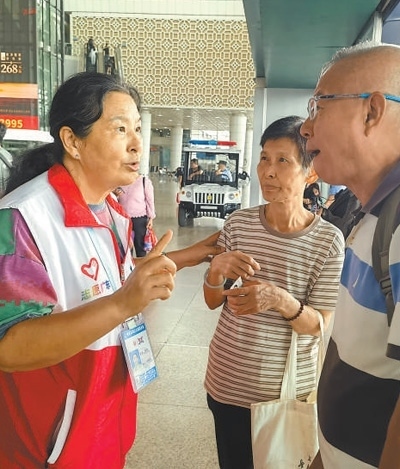 廣州南站的每個角落唐偉都了然于心。她已經(jīng)在這里服務超過13個年頭,是志愿服務隊里年紀最大的一名“銀發(fā)”志愿者,人們親切地稱呼她為“唐姨”。