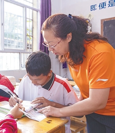 張明明輔導學生學習。楊幫慶攝