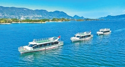 白色游艇飛馳,水花濺躍,劃出一道漂亮的弧線……碧綠的湖面上只有水聲浪聲,卻沒聽到發(fā)動機轟鳴聲。
