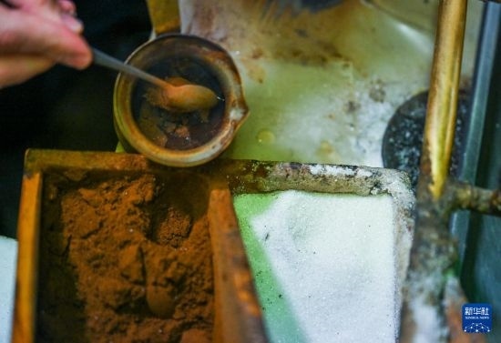 12月5日,在土耳其伊斯坦布爾一家咖啡館內(nèi),一名工作人員往器皿中添加咖啡細(xì)粉。