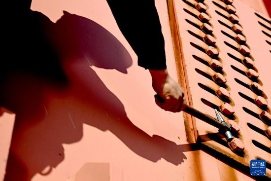 “鐺……鐺……鐺……”,在鄭焦城際鐵路黃河大橋的鋼梁洞之間,橋梁工們拿著檢查錘、敲擊著螺栓,通過(guò)聲音判斷大橋有沒(méi)有安全隱患。這樣的螺栓,在全長(zhǎng)11.3公里的鄭焦城際鐵路黃河大橋上,有將近10萬(wàn)顆。