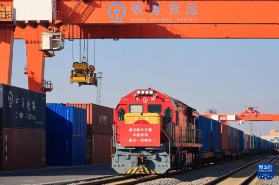 當(dāng)日是農(nóng)歷大年初一,一列滿載110標(biāo)箱紡織品、汽車(chē)配件、電子機(jī)械設(shè)備等貨物的中歐班列從南京鐵路物流中心堯化門(mén)站貨場(chǎng)啟程,開(kāi)往俄羅斯莫斯科。這是農(nóng)歷新年南京開(kāi)出的首趟中歐班列。