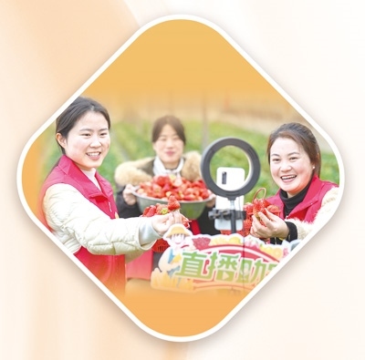 浙江省長(zhǎng)興縣畫溪街道,青年黨員干部通過(guò)網(wǎng)絡(luò)直播幫農(nóng)戶銷售新鮮草莓。