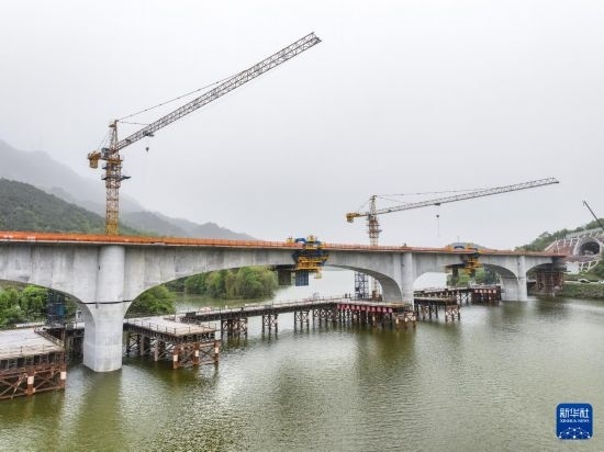 4月12日,由中鐵五局承建的成渝中線高鐵全線控制性工程玄天湖雙線大橋順利合龍。玄天湖雙線大橋全長460.561米,位于重慶市銅梁區(qū)玄天湖4A級景區(qū)內(nèi),環(huán)保要求高,施工難度大。