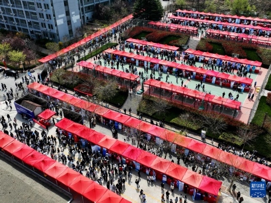 這是4月11日在山東青島科技大學(xué)拍攝的2025年春季綜合類大型雙選會(huì)招聘活動(dòng)現(xiàn)場(chǎng)(無(wú)人機(jī)照片)。