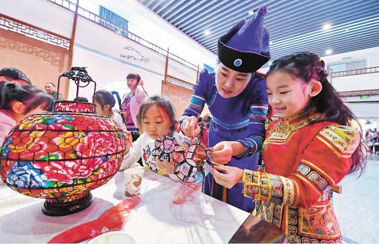 1月15日,小朋友們在非遺年貨展互動體驗區(qū)學(xué)習(xí)制作燈籠。當(dāng)日,“非遺過大年文化進(jìn)萬家——2019年全區(qū)非物質(zhì)文化遺產(chǎn)年貨展”在內(nèi)蒙古展覽館舉辦,活動日期為1月15日至24日。本次展覽精選了與傳統(tǒng)年俗有關(guān)的近100個非遺項目進(jìn)行集中展示,旨在推動非物質(zhì)文化遺產(chǎn)創(chuàng)造性轉(zhuǎn)化、創(chuàng)新性發(fā)展,促進(jìn)文化脫貧攻堅,傳承和弘揚(yáng)民族優(yōu)秀傳統(tǒng)文化,將非遺融入傳統(tǒng)新春佳節(jié),讓記憶里的濃濃年味在非遺傳統(tǒng)中鮮活起來。(內(nèi)蒙古日報社融媒體記者 王磊攝)