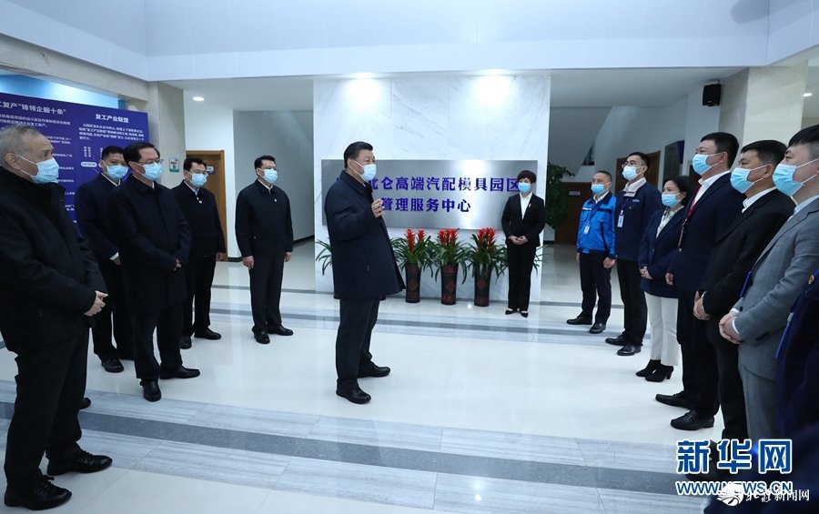 3月29日至4月1日,中共中央總書(shū)記、國(guó)家主席、中央軍委主席習(xí)近平在浙江考察。這是3月29日,習(xí)近平在寧波北侖大碶高端汽配模具園區(qū)考察中小型民營(yíng)制造業(yè)企業(yè)寧波臻至機(jī)械模具有限公司,聽(tīng)取企業(yè)生產(chǎn)經(jīng)營(yíng)及復(fù)工復(fù)產(chǎn)情況介紹。 新華社記者 鞠鵬 攝